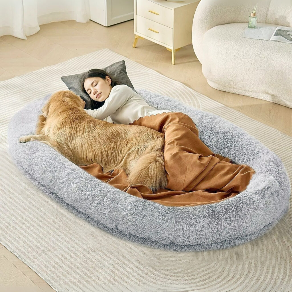 Lounge, nap, and bond in ultimate comfort with the Qpet Human Dog Bed – made for pets and their people.