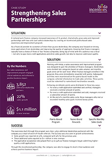 A national automobile finance company was able to increase awareness of its product, dramatically grow sales, and improve partnerships with new and used vehicle dealerships by creating an incentivized points-based sales-awareness and improvement program.