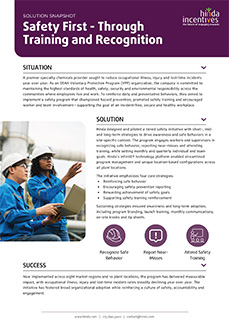 A premier provider of specialty chemicals was able to reduce occupational illness and injury and lost-time incident rates year over year by creating a top-of-mind program that reinforced hazard prevention, promoted safety training, and encouraged worker and team involvement. Gain free access to the complete report by entering your information below.